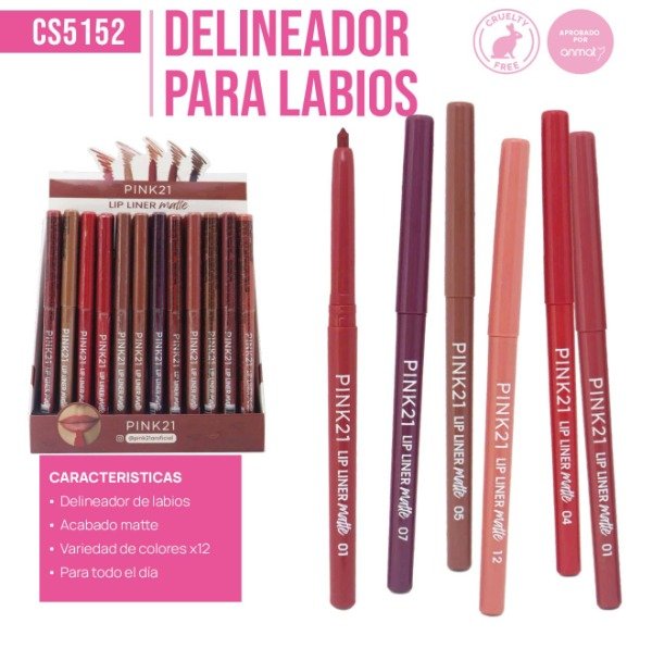 Incorporá el Delineador Labial Pink 21 a tu rutina y realzá tu sonrisa con confianza y estilo. ¡Elegí calidad, elegí Pink 21!